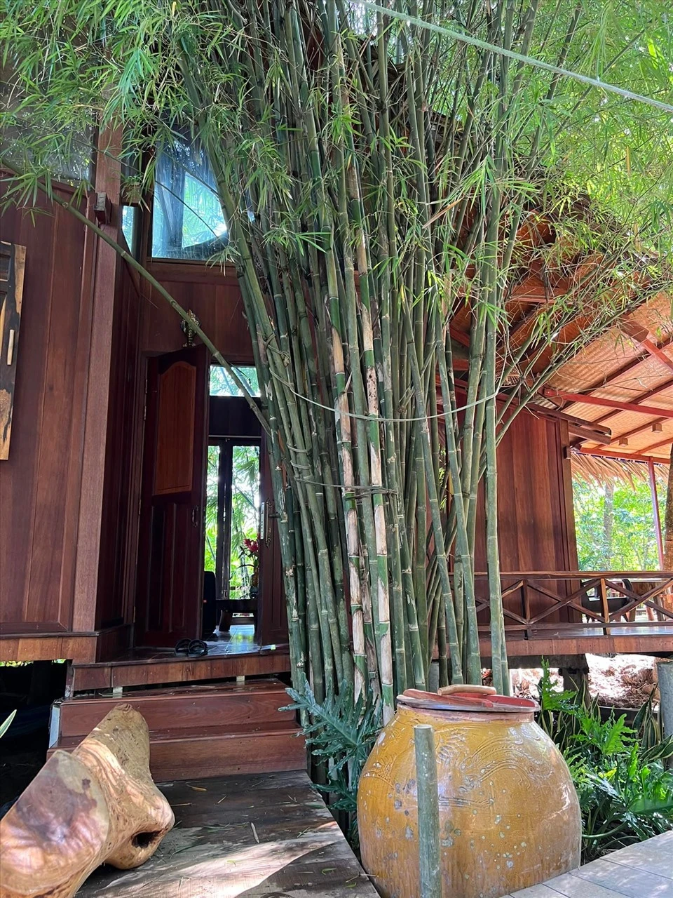 Khu nghỉ dưỡng được xây dựng bên bờ sông Tiền, giữ nguyên nét đặc trưng làng quê miền Tây với vườn cây, ao cá, lều trại, bungalow và quán cà phê nổi. Không gian trưng bày thêm chén, đĩa, tủ gỗ cổ xưa, gợi nhớ về nếp sống Nam Bộ xưa. Những căn bếp nấu bằng lò than, những hàng tre xanh mát trước sân càng khiến khu sinh thái trở nên gần gũi và ấm áp.