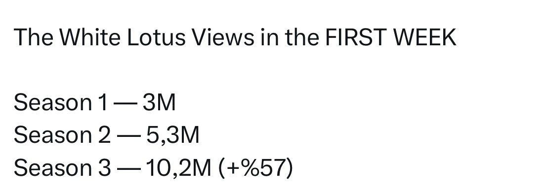 Và quan trọng nhất, Lisa giúp tăng rating của The White Lotus 3 lên hơn so với 2 mùa trước. Rating tuần đầu tiên của mùa 1 chỉ là 3 triệu view, rating mùa 2 là 5,3 triệu view và rating mùa 3 là 10,2 triệu view, tăng đến 57%. Đây là điều mà mọi nhà sản xuất phim đều mong muốn.