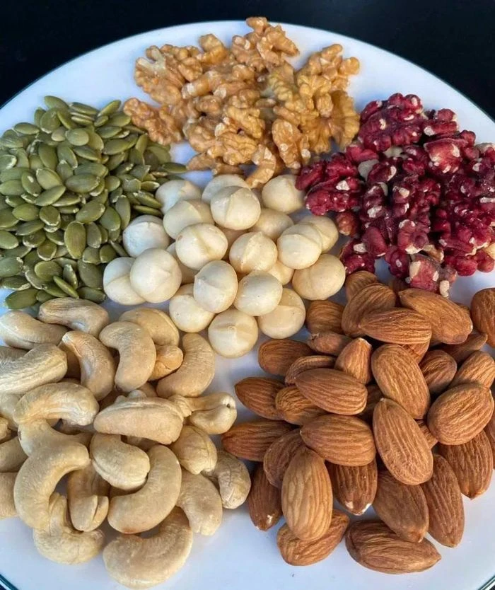 Đây là món ăn vặt giàu protein dễ bổ sung nhất vào chế độ ăn. Hạnh nhân , đậu phộng, óc chó, hạt điều hay hạt dẻ cười giúp cung cấp năng lượng ổn định và chất béo lành mạnh.