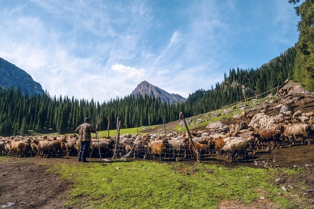 Một người nông dân đang chăn đàn cừu ở Trung Quốc.