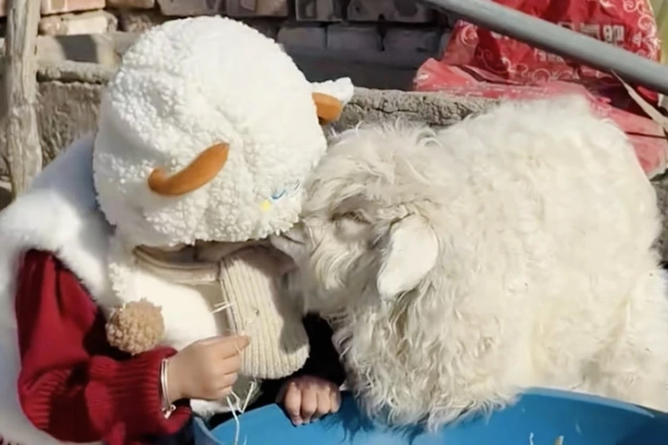 Cừu non chỉ tỏ ra dễ thương với trẻ em. Ảnh: SCMP composite/Sohu/RedNote.