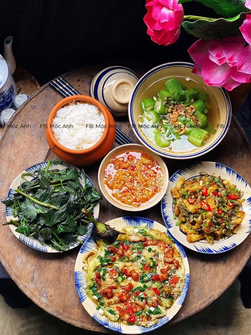 Mùa thu miền Bắc mang đến những mâm cơm dung dị nhưng thấm đẫm hương vị quê nhà. Bên mâm cơm nóng hổi, bát canh bí hầm xương tỏa mùi thơm ngọt thanh, đĩa cá kho tiêu dậy mùi quyện cùng từng hạt cơm trắng dẻo, bát rau muống luộc xanh mướt ăn kèm bát nước chấm mắm tỏi ớt cay nồng. Ngày se lạnh, bát canh rau đay nấu hay chả lá lốt nướng vừa thơm vừa béo cũng đủ làm ấm lòng. Tất cả hòa quyện, tạo nên bữa cơm mùa thu vừa ấm bụng, vừa gợi nhớ ký ức sum họp bên gia đình.