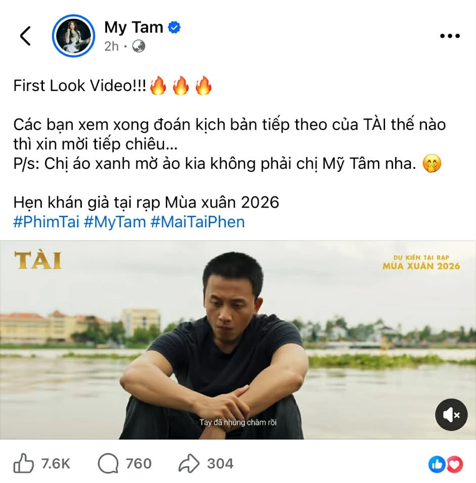 Sau màn công bố dự án gây sốt cõi mạng, phía Mỹ Tâm tiếp tục tung ra 1st Look Trailer của phim Tài , dự án mà nữ ca sĩ nắm vai trò sản xuất và giao ghế đạo diễn cho Mai Tài Phến. Trích đoạn dài hơn nửa phút đã phần nào hé lộ cốt truyện, bối cảnh phim, đồng thời gây tò mò bởi một bóng dáng bí ẩn.