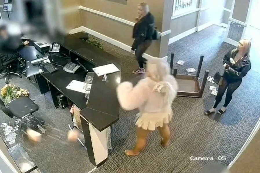 Cảnh tượng Kera McKeown và Larisa Sumovskaja đập phá ở quầy lễ tân năm 2025 được ghi lại.