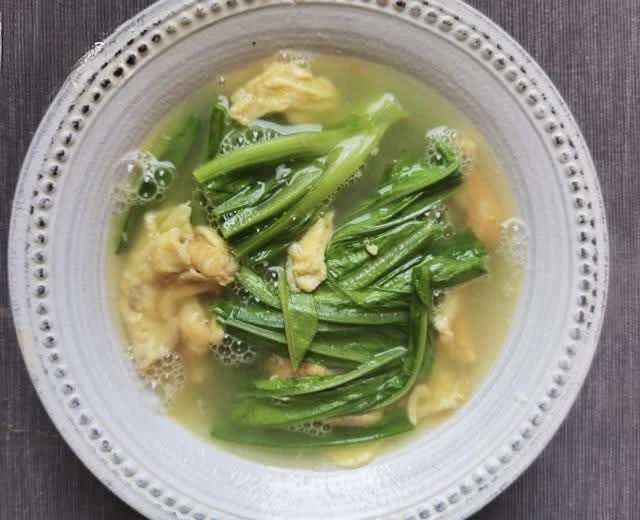 Món ăn này chế biến cực kỳ nhanh chóng! Chỉ mất khoảng 5phút là xong, đây là món ăn hoàn hảo khi bạn lười vào bếp mà vẫn muốn đủ dinh dưỡng. Hương thơm dịu nhẹ của rau cải cúc giúp trung hòa hoàn hảo mùi tanh của trứng, khiến trứng mềm và tươi mát. Nó cũng cực kỳ tốt cho việc làm ẩm phổi.