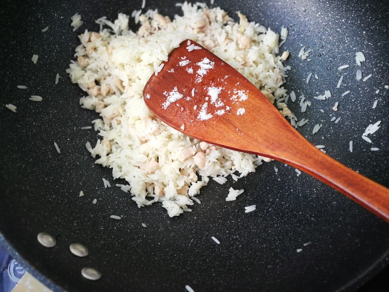 2 bát cơm nguội (nếu không có cơm nguội hãy cho cơm vào trong tủ lạnh để hạt cơm se lại), 15g củ cải muối (hoặc dưa cải bẹ muối), 100g thịt nạc, 2 quả trứng gà, 50g rau dền đỏ, một chút gia vị, bột nêm, chút bột tiêu, lượng vừa phải tỏi và hành củ băm nhỏ, dầu ăn.