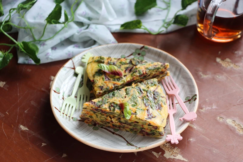 Bánh trứng rau dền đỏ là món ăn được chế biến cực kỳ đơn giản, chỉ cần nhìn qua là bạn biết cách. Bánh sau khi hoàn thành có độ mềm mịn vừa phải, thơm béo từ trứng và rau dền tươi mát, giàu dinh dưỡng.
