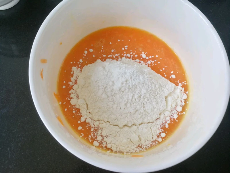 Bước 1: Cho cà rốt đã bào sợi vào bát tô, đập trứng vào rồi thêm chút muối. Dùng đũa trộn nhẹ nhàng để trứng và cà rốt hòa quyện. Sau đó bạn thêm bột mì vào, trộn đều.