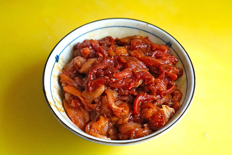 Bước 1: Rửa sạch thịt heo và thấm khô nước. Sau đó thái thịt heo thành dạng sợi rồi cho vào bát ướp với chút rượu nấu ăn, nước tương và bột năng. Ngó sen bạn rửa sạch và cắt khúc hoặc thái mỏng tùy thích.