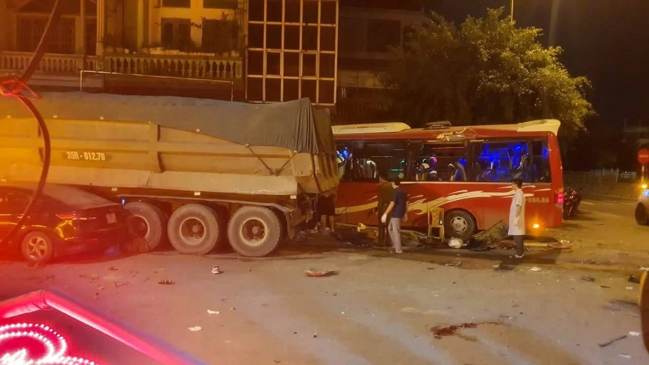 Sau đó, xe đầu kéo mất lái, lao sang phần đường ngược chiều, tiếp tục va chạm với xe khách BKS 15B-020.XX do anh Văn Mạnh Vương (SN 1988, xã An Đỗ, huyện Bình Lục, tỉnh Hà Nam) điều khiển.