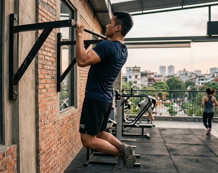 Lưu ý: Người mới có thể sử dụng dây hỗ trợ hoặc máy tập để giảm tải trước khi tập hoàn chỉnh.