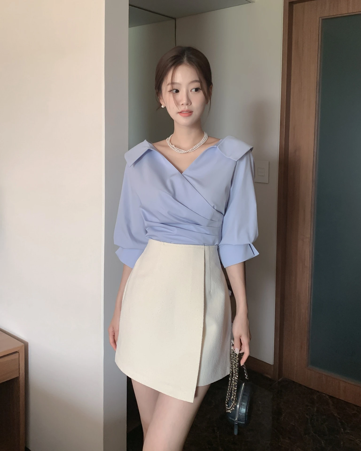 Sự kết hợp giữa áo blouse và chân váy ngắn luôn mang lại vẻ ngoài nữ tính và nhẹ nhàng. Áo blouse thường có chất liệu mềm mại, bay bổng như voan, lụa hoặc cotton mỏng, rất phù hợp với thời tiết nóng. Khi đi cùng chân váy ngắn, tổng thể trang phục trở nên thanh lịch nhưng vẫn giữ được sự trẻ trung.