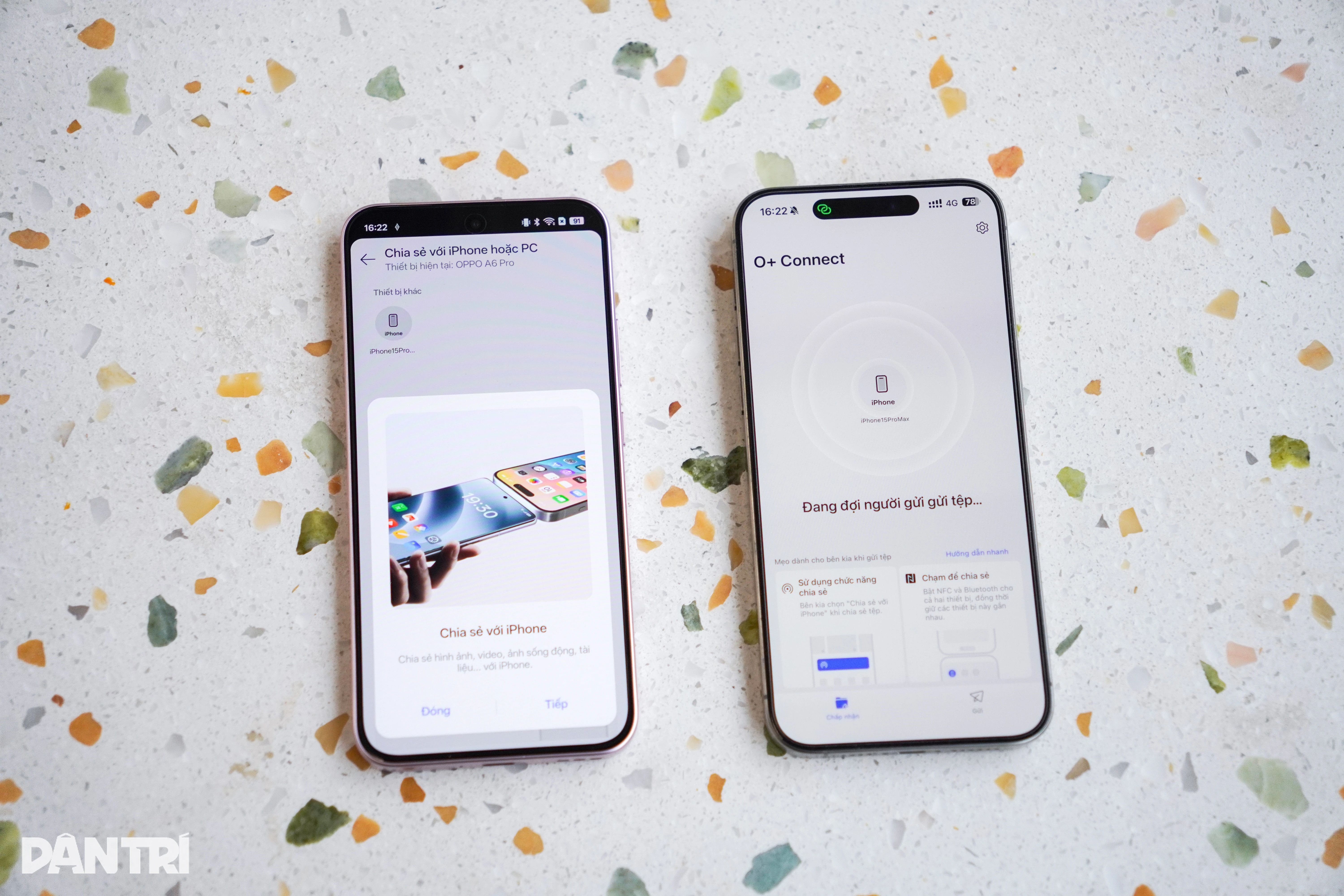 Giống với các thiết bị Find X8 và Reno14, máy cũng được trang bị khả năng "giao tiếp" với các sản phẩm thuộc hệ sinh thái của Apple. OPPO A6 Pro có thể chia sẻ nhanh hình ảnh, video với iPhone, tương tự tính năng AirDrop mà Apple tích hợp trên các thiết bị của hãng.