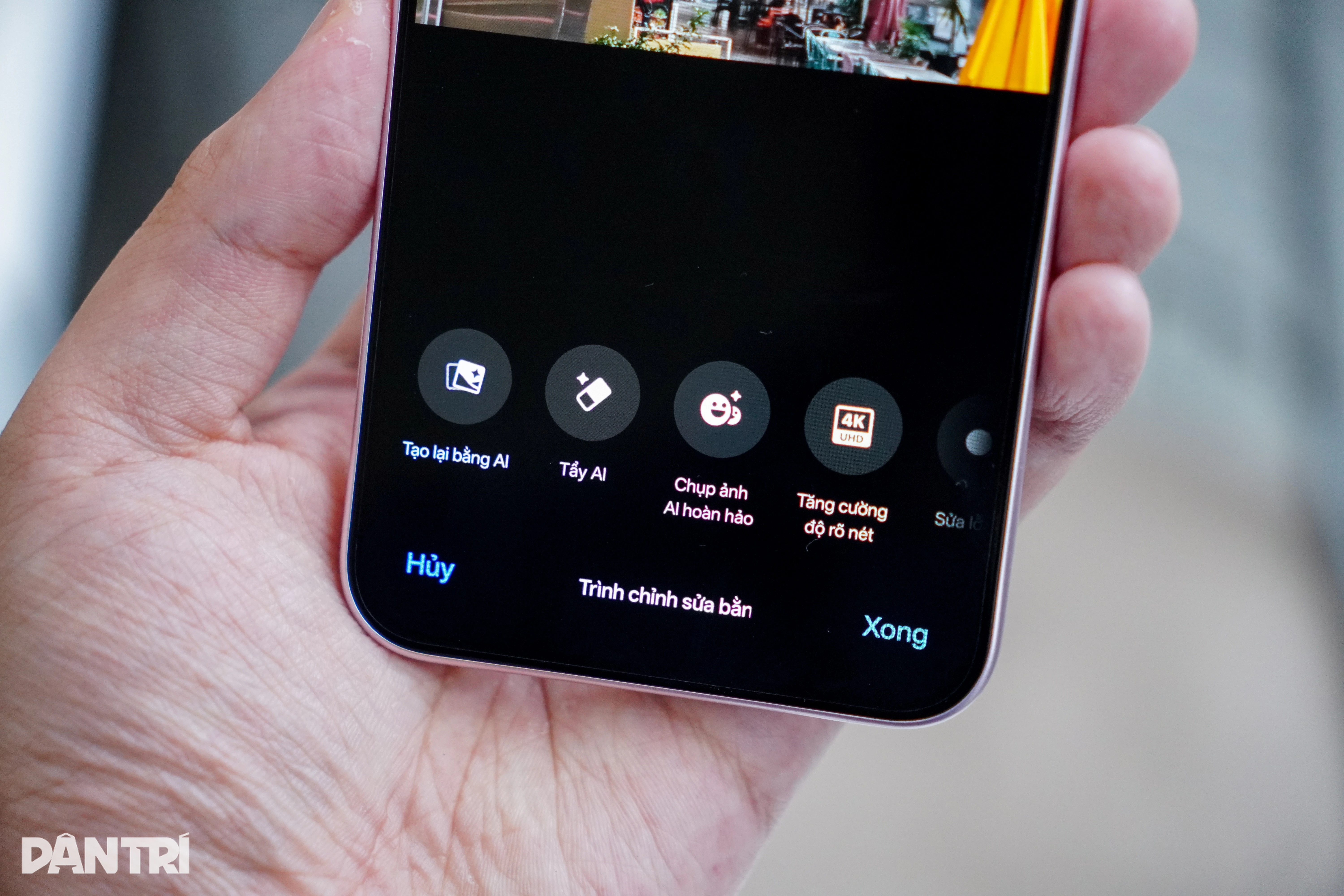 Ngoài ra, thiết bị còn hỗ trợ hàng loạt công cụ chỉnh sửa khác như xóa vật thể AI, tăng cường rõ nét AI, làm nét khuôn mặt AI, chống lóa AI.