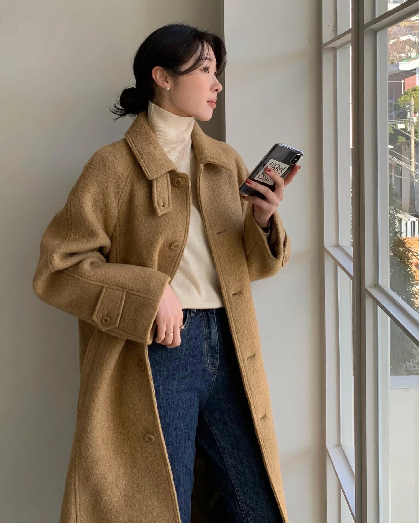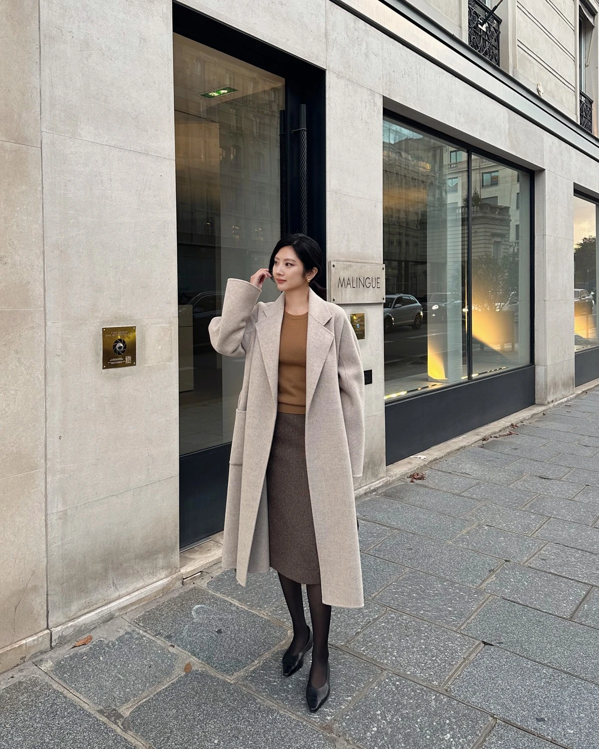 Nếu blazer mang lại sự thanh lịch nhẹ nhàng thì áo khoác dạ dáng dài chính là “chân ái” trong những ngày rét đậm. Chất liệu dạ thường dày, nặng và giữ form tốt, tạo cảm giác sang trọng mà không cần phụ kiện cầu kỳ. Một chiếc áo dạ dài giúp cả outfit trông chỉn chu hơn chỉ trong vài giây, đây chính là lý do nó luôn được ưa chuộng.