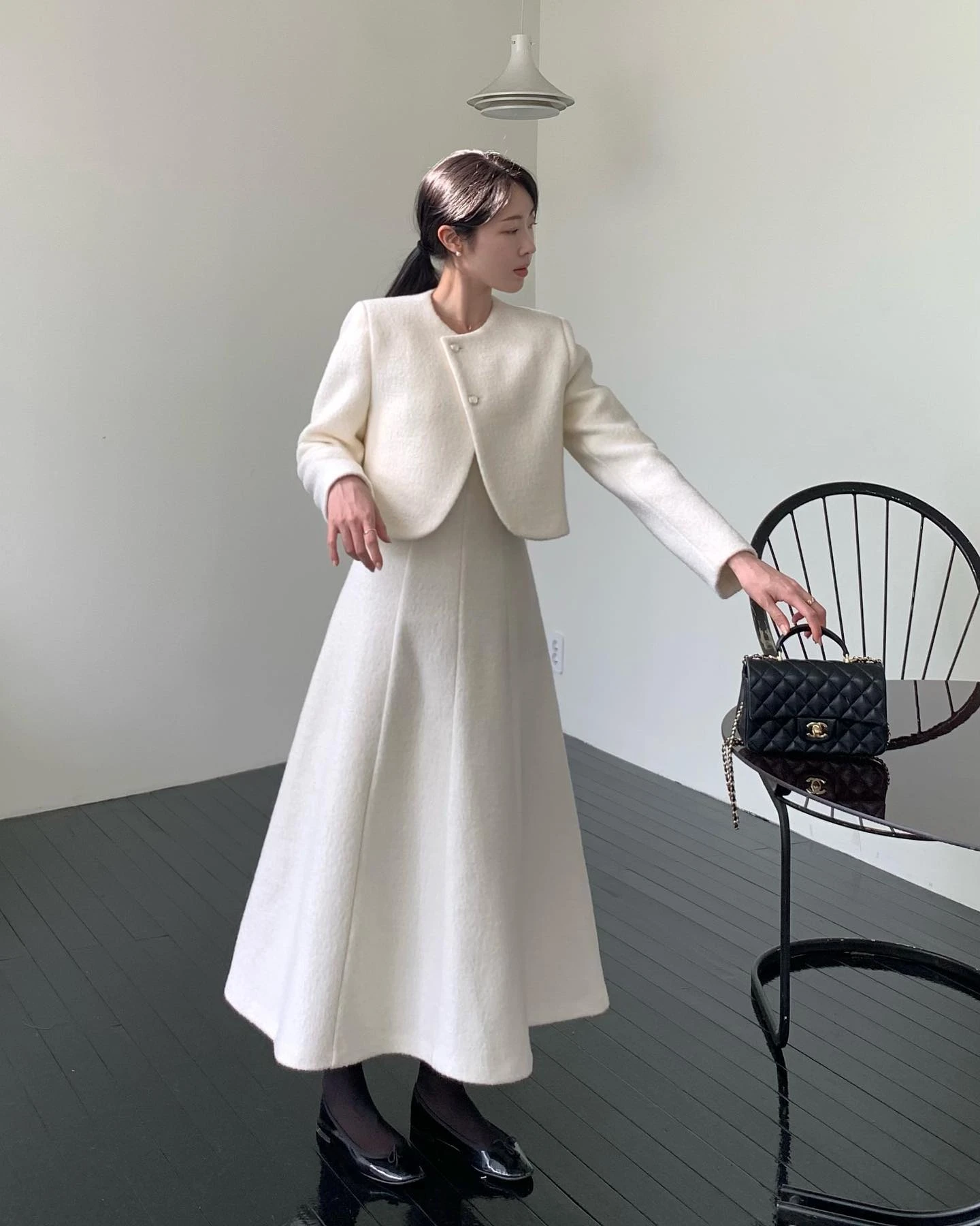 Áo tweed cũng đặc biệt hợp với mùa lễ hội cuối năm. Bạn có thể mặc cùng quần jeans, chân váy dạ hoặc váy liền màu tối là đủ để tạo cảm giác sang trọng mà vẫn dễ chịu, không bị “làm quá”. Đây là kiểu áo giúp diện mạo của bạn trở nên tinh tế theo cách nhẹ nhàng, phù hợp với cả những ngày cần ăn mặc chỉn chu lẫn những buổi đi chơi thoải mái.