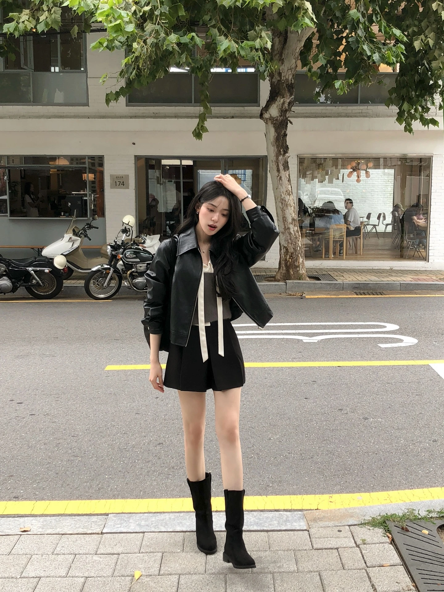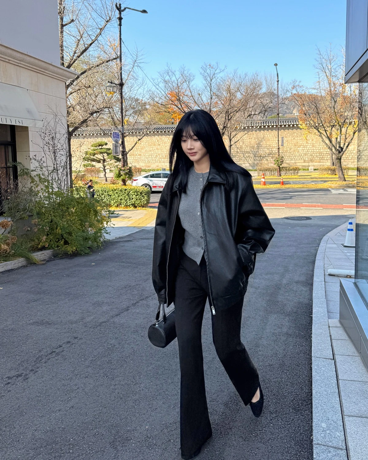 Áo khoác da luôn tạo cảm giác cá tính, nhưng điều thú vị là nó hoàn toàn có thể trở nên sang trọng nếu bạn biết cân bằng cách phối đồ. Một chiếc áo da màu đen cổ điển, phom vừa phải, không quá nhiều chi tiết sẽ giúp bạn trông hiện đại và thời thượng mà không bị “hầm hố”.