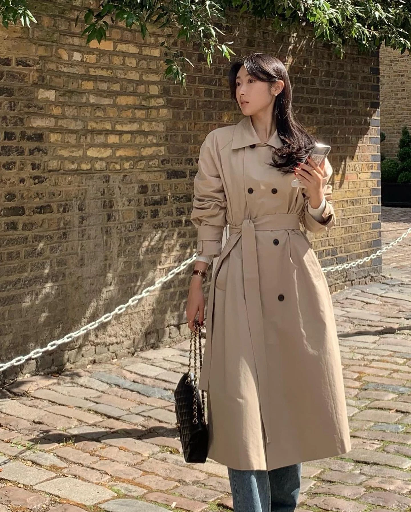 Không quá dày như áo dạ nhưng vẫn đủ giữ ấm, trench coat là lựa chọn tuyệt vời cho những ngày trời lạnh vừa phải. Phom áo dáng dài, thắt đai nhẹ ở eo tạo hiệu ứng cơ thể gọn gàng và nữ tính. Trench coat cũng là kiểu áo “cứ khoác lên là đẹp”, đặc biệt hợp với những ai thích sự đơn giản nhưng vẫn muốn trông nổi bật.