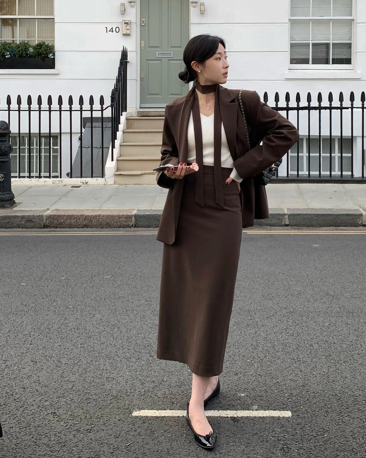 Để xây dựng phong cách tối giản, bạn có thể chọn những chiếc chân váy có màu sắc trung tính như đen, nâu hoặc be. Kết hợp với áo len, áo sơ mi và một chiếc áo khoác dạ là bạn đã có ngay một bộ trang phục hoàn hảo cho mùa đông.