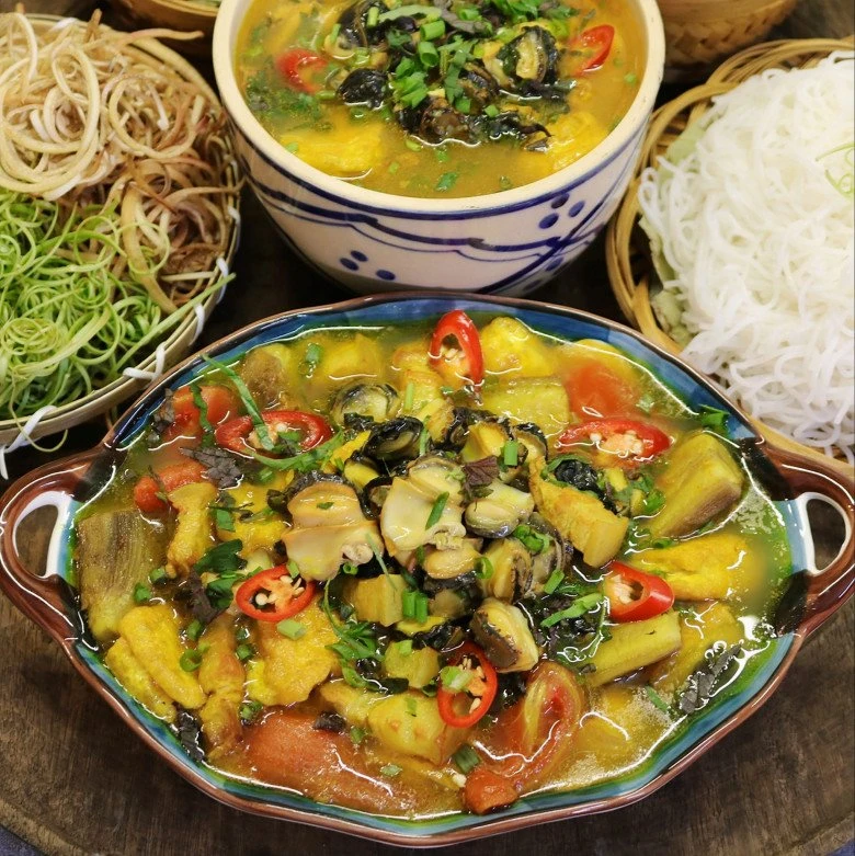 Món ốc nấu chuối đậu chua cay ngon hết sảy
