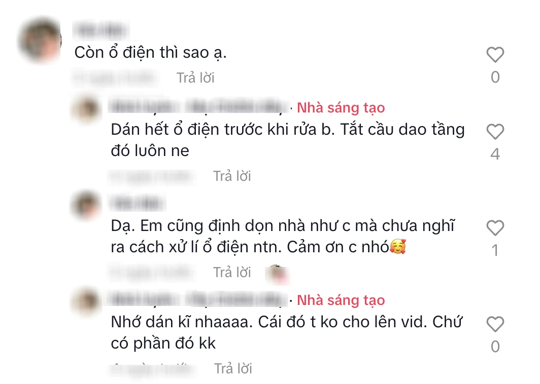 Không ít người thắc mắc rằng việc xịt nước trực tiếp vào tủ gỗ, tủ lạnh hay khu vực có ổ điện liệu có gây chập cháy, ẩm mốc hoặc làm nhanh hư đồ dùng. Trước những băn khoăn đó, Nhã Uyên đã chia sẻ rất chi tiết. Với ổ điện, cả nhà luôn bịt kín kỹ lưỡng trước khi xịt nước và ngắt hoàn toàn nguồn điện ở khu vực đang vệ sinh, nên đảm bảo an toàn tuyệt đối.