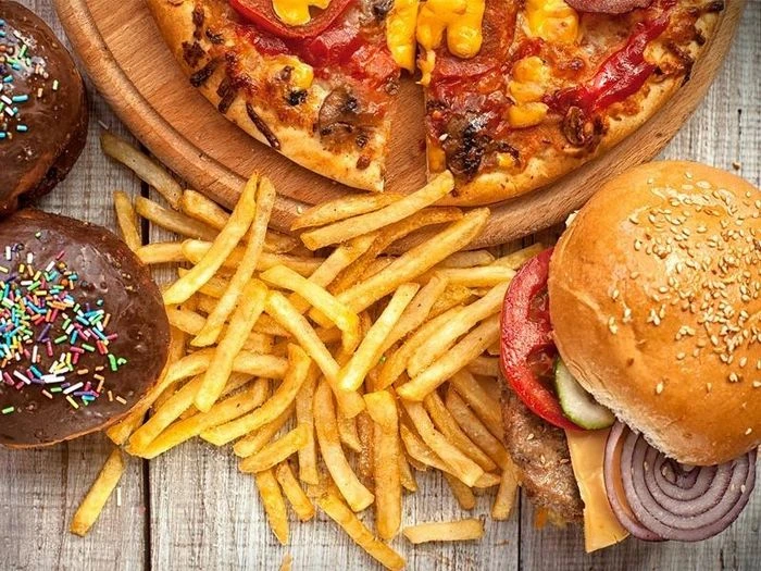 Bánh mì kẹp thịt, gà rán, xúc xích, khoai tây chiên và nước ngọt chứa nhiều calo, chất béo và carbohydrate tinh chế. Một nghiên cứu cho thấy, thường xuyên ăn fastfood có thể làm tăng nguy cơ nổi mụn tới 43%.