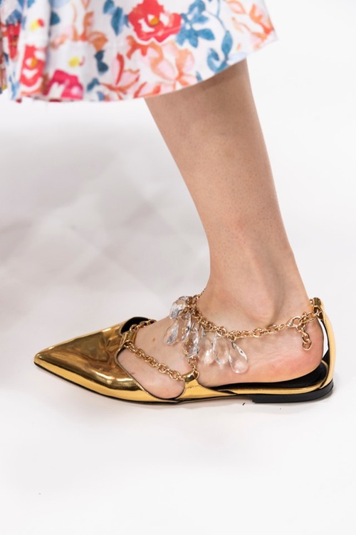 Thay vì vòng đeo chân, những sợi dây chuyền được gắn lên đôi giày trông đầy nữ tính. Dù đó có là chiếc vòng mảnh mai hay to bản, thậm chí chiếc vòng còn được gắn thêm những viên đá tạo nên những tiếng kêu vui nhộn theo mỗi bước chân của bạn. Đặc biệt, đeo trang sức cho đôi giày còn thể hiện sự chăm chút, yêu bản thân của phái đẹp, điều này thật sự rất thu hút.