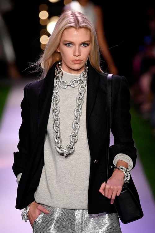Gần đây, dây chuyền chunky đã dần thay thế trang sức thanh lịch. Với loại dây chuyền này, màu sắc khá đa dạng, từ màu kim loại, ánh kim, trắng, thậm chí là sự kết hợp của nhiều gam màu sắc với nhau. Ngoài ra, phái đẹp mix chúng với trang phục basic hay trang phục họa tiết đều đẹp.