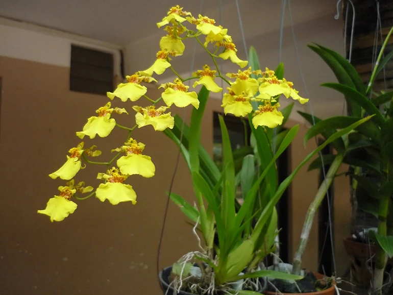Dáng hoa mảnh mai như váy múa, màu vàng tươi sáng – lan vũ nữ thường được xem là loài hoa mang năng lượng dương mạnh, kích hoạt tiền tài và quý nhân.