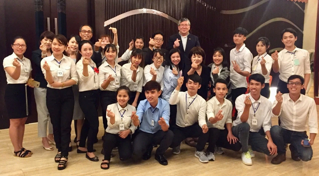 Tấn Tài chụp ảnh lưu niệm cùng các đồng nghiệp tại Nhật Bản