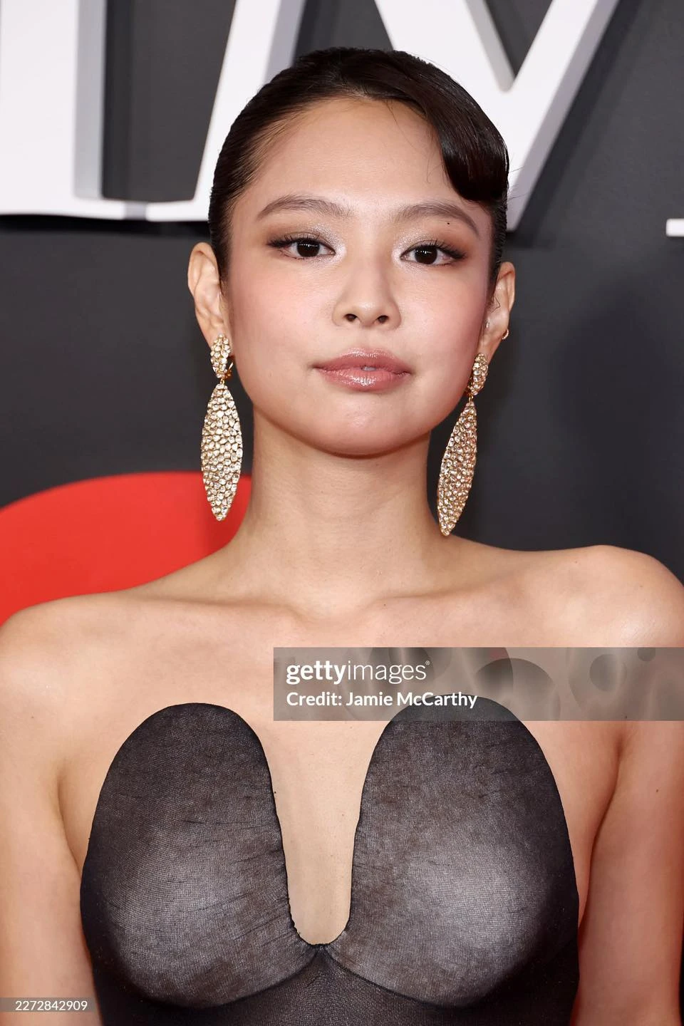 Tuy nhiên, tạo hình của Jennie tại sự kiện hôm nay không được dân tình đánh giá cao. Bộ trang phục đen, kết hợp cùng hoa tai cỡ lớn khiến cô trông già dặn. Ảnh: Getty Images.