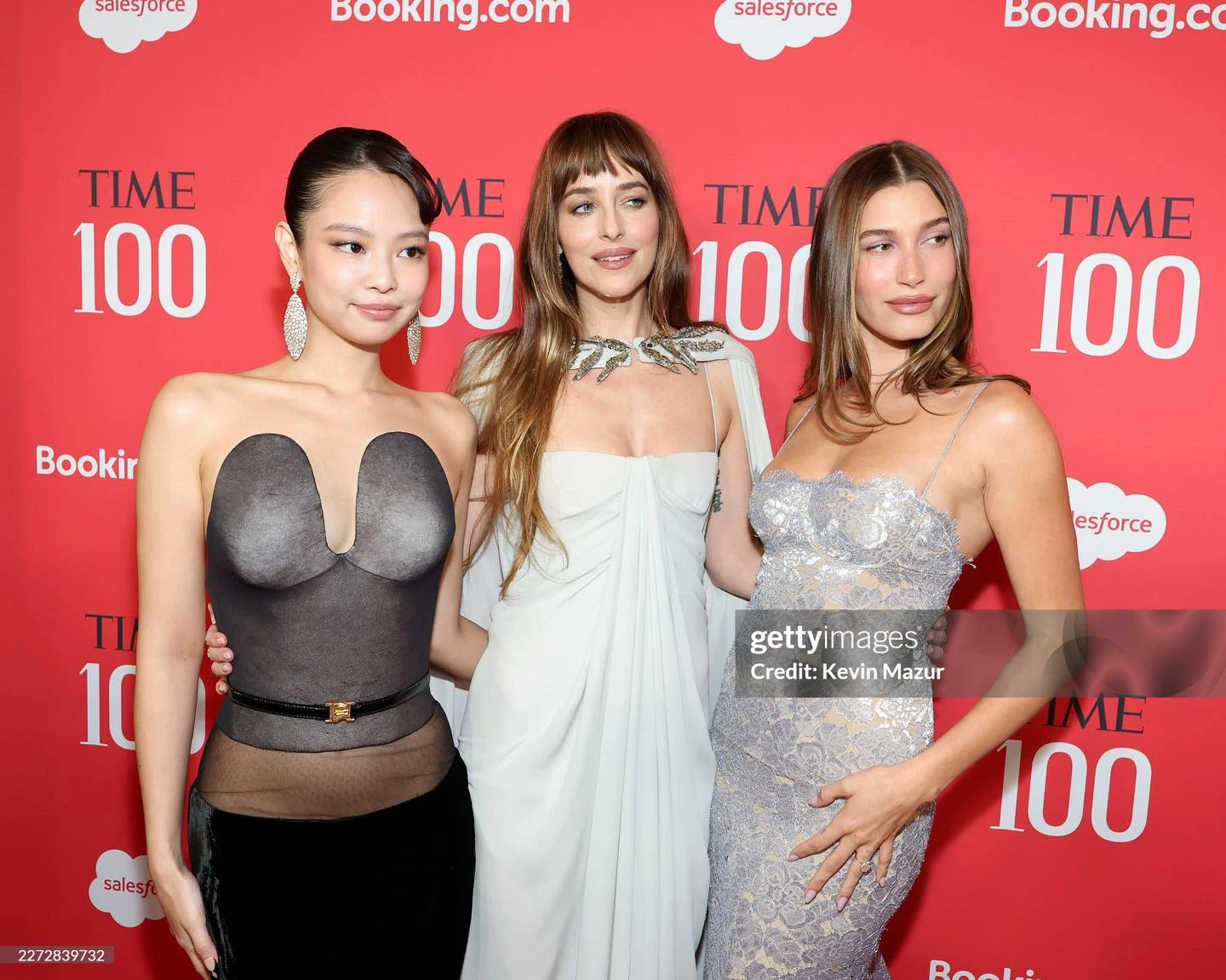 Ở khung hình chung với Hailey Bieber – bà xã của Justin Bieber và mỹ nhân 50 Sắc Thái Dakota Johnson, do lép vế về chiều cao và có phong cách ăn mặc như “quý bà”. Jennie bị 2 người đẹp Hollywood át vía hào quang. Có thể nói, đây là lần đi thảm đỏ đáng thất vọng nhất và mặc xấu hiếm thấy của Jennie.
