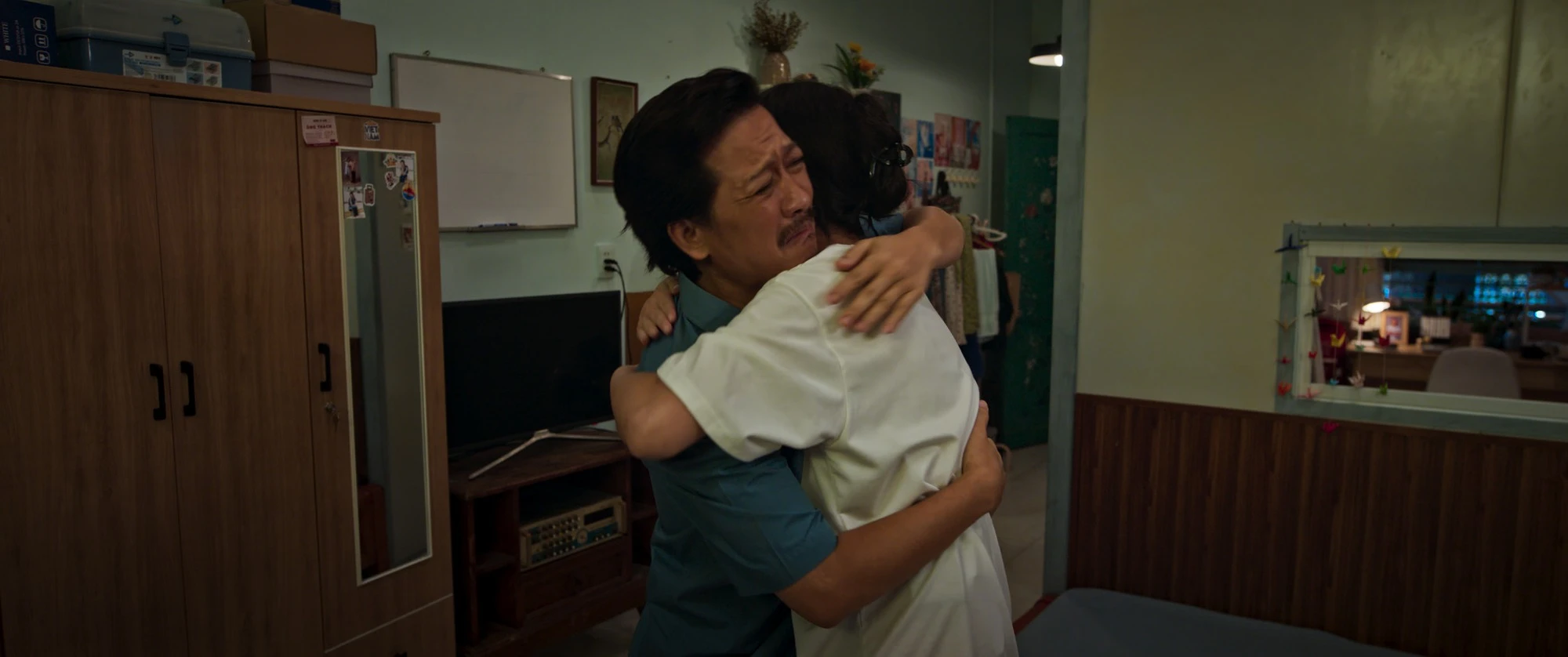 Không những vậy, Trường Giang còn gây ấn tượng với hóa trang thành người cha trung niên, làm nghề buôn gánh bán bưng và có nét truyền thống. Làn da rám nắng, mái tóc muối tiêu cùng gương mặt khắc khổ của nam nghệ sĩ gợi nhớ hình tượng Mười Khó kinh điển nhưng lược đi sự nhí nhố, hài hước năm xưa. Nhân vật chính trong Nhà Ba Tôi Một Phòng nỗ lực từng ngày, hy sinh thầm lặng giữa cuộc sống xô bồ để lo cho con.