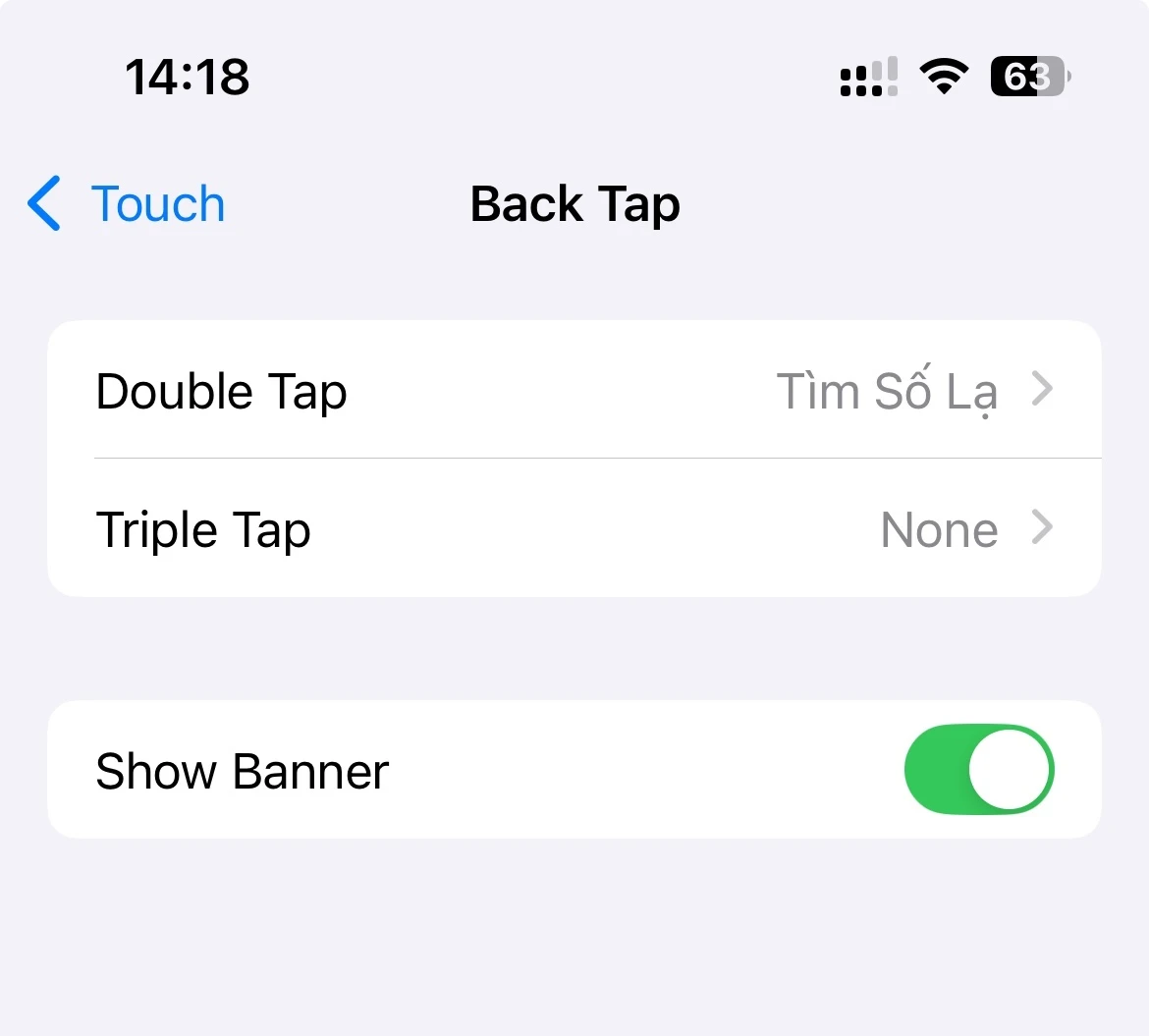 Cách bật tính năng là truy cập Cài đặt (Settings) Trợ năng (Accessibility) Cảm ứng (Touch) Chạm vào mặt sau (Back Tap). Bạn có thể gán các hành động khác nhau cho thao tác chạm 2 lần hoặc 3 lần, ví dụ như chụp ảnh màn hình, khóa máy, mở trung tâm điều khiển, gọi Siri...