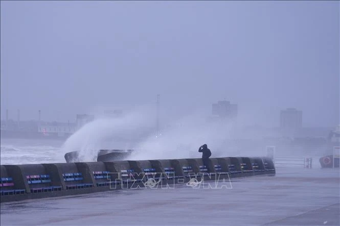 Sóng lớn ở New Brighton , gần Liverpool, Anh do ảnh hưởng của bão. Ảnh tư liệu: THX/TTXVN