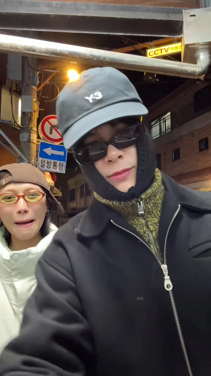 Anh Tú và Diệu Nhi vui vẻ quay video trong chuyến du lịch tại Hàn Quốc. Ảnh chụp màn hình