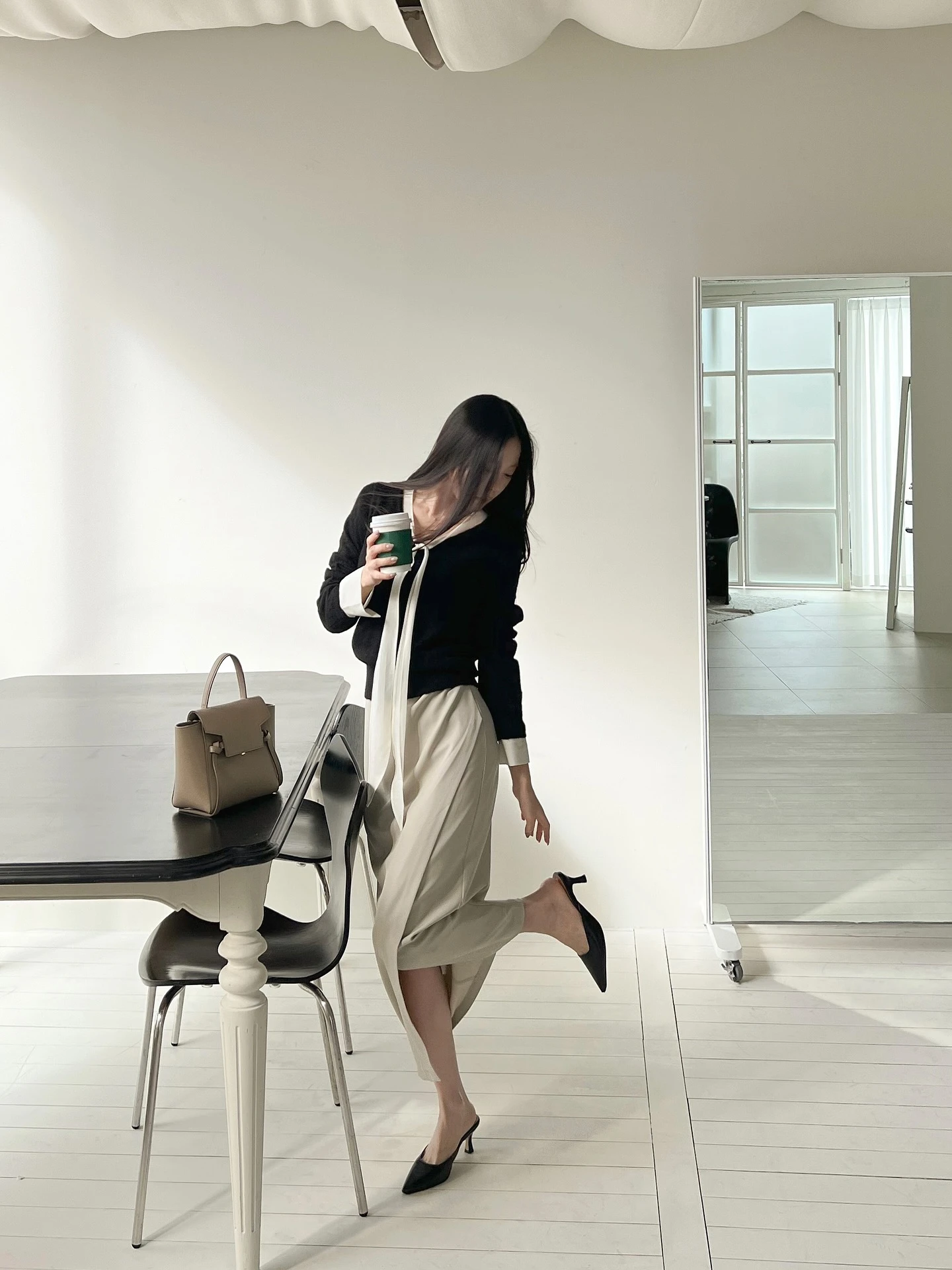 Vào mùa xuân, chị em có thể ưu tiên chân váy xẻ tà dáng midi với chất liệu nhẹ như lụa, voan hoặc vải mềm. Các gam màu trung tính hoặc pastel sẽ giúp outfit trông tươi mới, không bị "già". Khi kết hợp cùng áo len mỏng, áo sơ mi hoặc blazer, chân váy xẻ tà mang lại vẻ ngoài vừa thanh lịch vừa trẻ trung, rất phù hợp với nhiều độ tuổi.