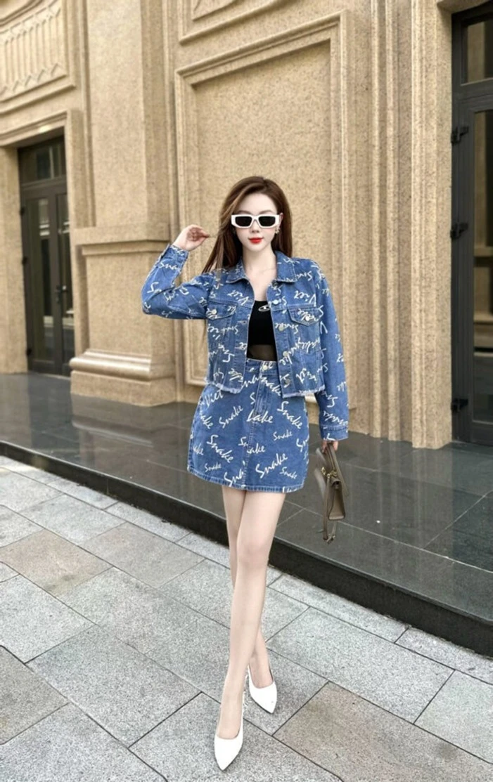 Các cô gái có thể lựa chọn chiếc áo khoác jean tông xanh phối cùng chân váy dáng ngắn chữ A . ẢNH: @THECIUSAIGON