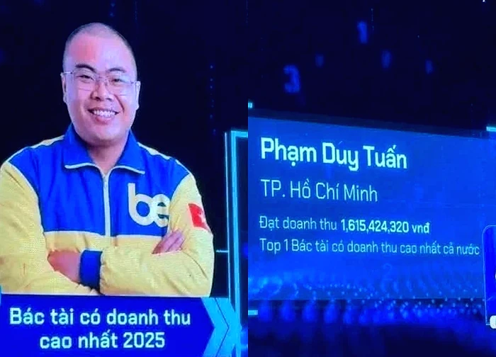 Tối 22/12, trên mạng xã hội nhiều hội nhóm bất ngờ chia sẻ bức ảnh chụp trong một sự kiện vinh danh bác tài (tài xế) đạt top 1 doanh thu cao nhất cả nước trong năm 2025.