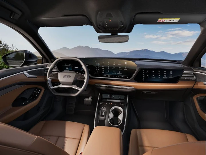 Khoang lái được tùy biến bởi dải sáng tương tác (interaction light) nằm dưới kính chắn gió, hoặc lựa chọn qua thao tác chạm trên màn hình hiển thị toàn cảnh. Không gian trải nghiệm được hoàn thiện với màn hình MMI 10,9-inch dành riêng cho hành khách phía trước. Tận hưởng cảm giác lái tuyệt vời cùng sự hỗ trợ hông/vai vượt trội với hàng ghế tiện nghi phía trước. Ghế được trang bị chức năng điều chỉnh điện, hỗ trợ thắt lưng 4 hướng, và được bọc da cao cấp kết hợp với da nhân tạo trong các tông màu Đen hoặc Nâu đầy tinh tế.