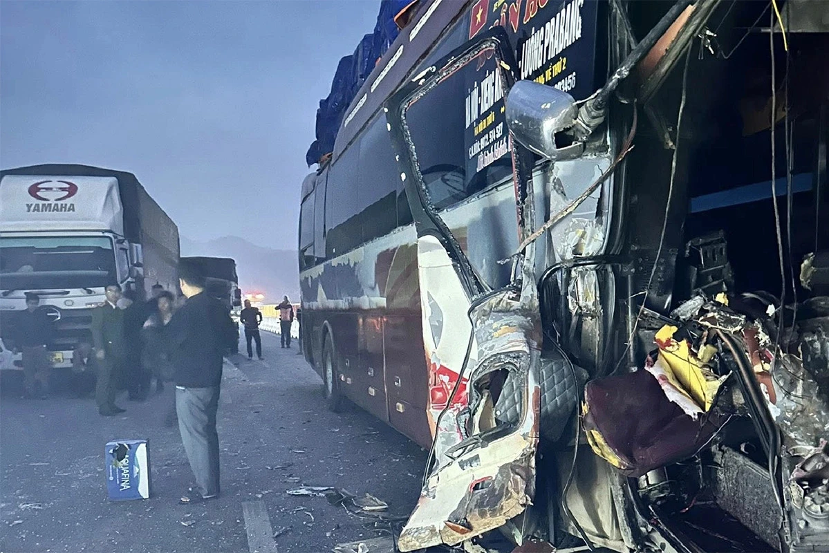 Hậu quả, người ngồi trên xe tải BKS UN-03XX tử vong tại chỗ. Tại hiện trường, 5 ô tô hư hỏng nặng, trong đó một xe khách giường nằm bị biến dạng phần đầu.