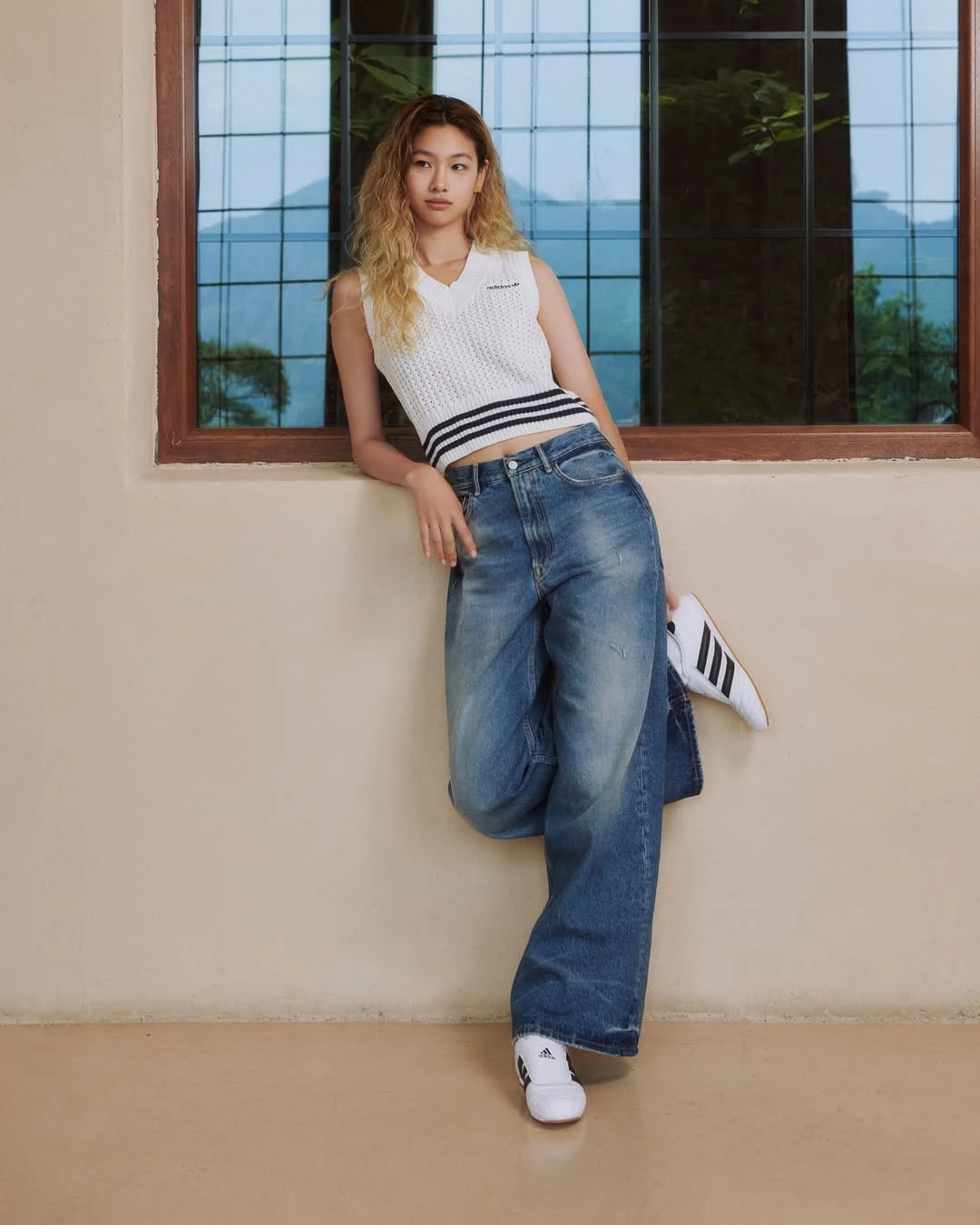 Nàng diện áo dệt kim họa tiết vặn thừng cùng quần jeans ống suông, tạo nên phong cách giản dị mà vẫn đầy cuốn hút . ẢNH: @HOOOOOYEONY