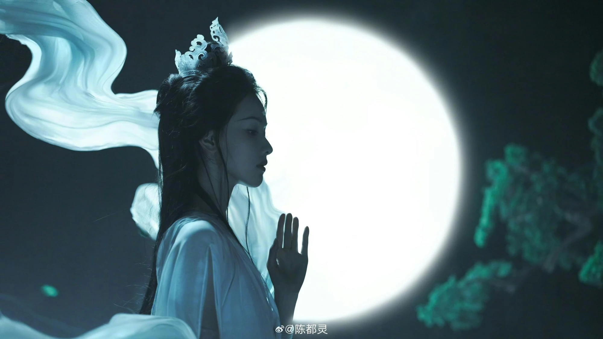 Trong loạt ảnh, Trần Đô Linh hiện lên với vẻ đẹp mong manh, thoát tục, tựa bóng trăng in trên mặt nước. Trong lớp y phục trắng nhẹ bay, từng chuyển động đều mềm mại, bí ẩn khiến người xem khó lòng dời mắt.