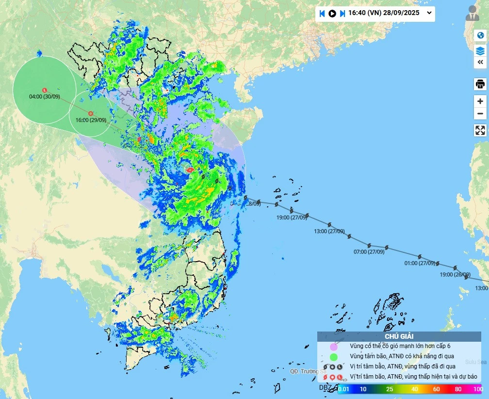 Từ chiều tối 28/9 đến sáng 29/9, khu vực Nam Quảng Trị đến TP Đà Nẵng có mưa vừa, mưa to với tổng lượng mưa phổ biến 50-100mm, cục bộ có nơi trên 150mm.
