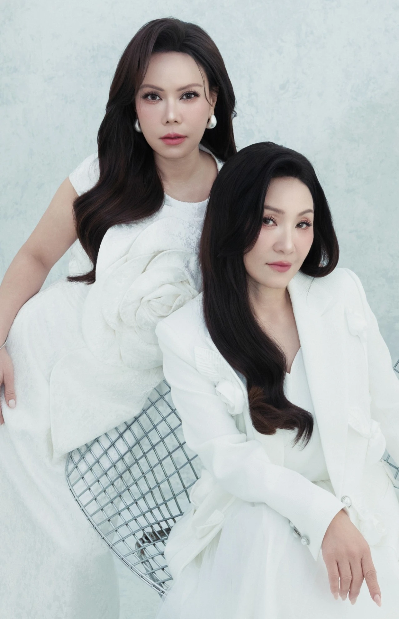 Cặp đôi nghệ sĩ Việt Hương – Hồng Đào diện trang phục trắng đồng điệu khác hẳn trên phim “Cục vàng của ngoại”.