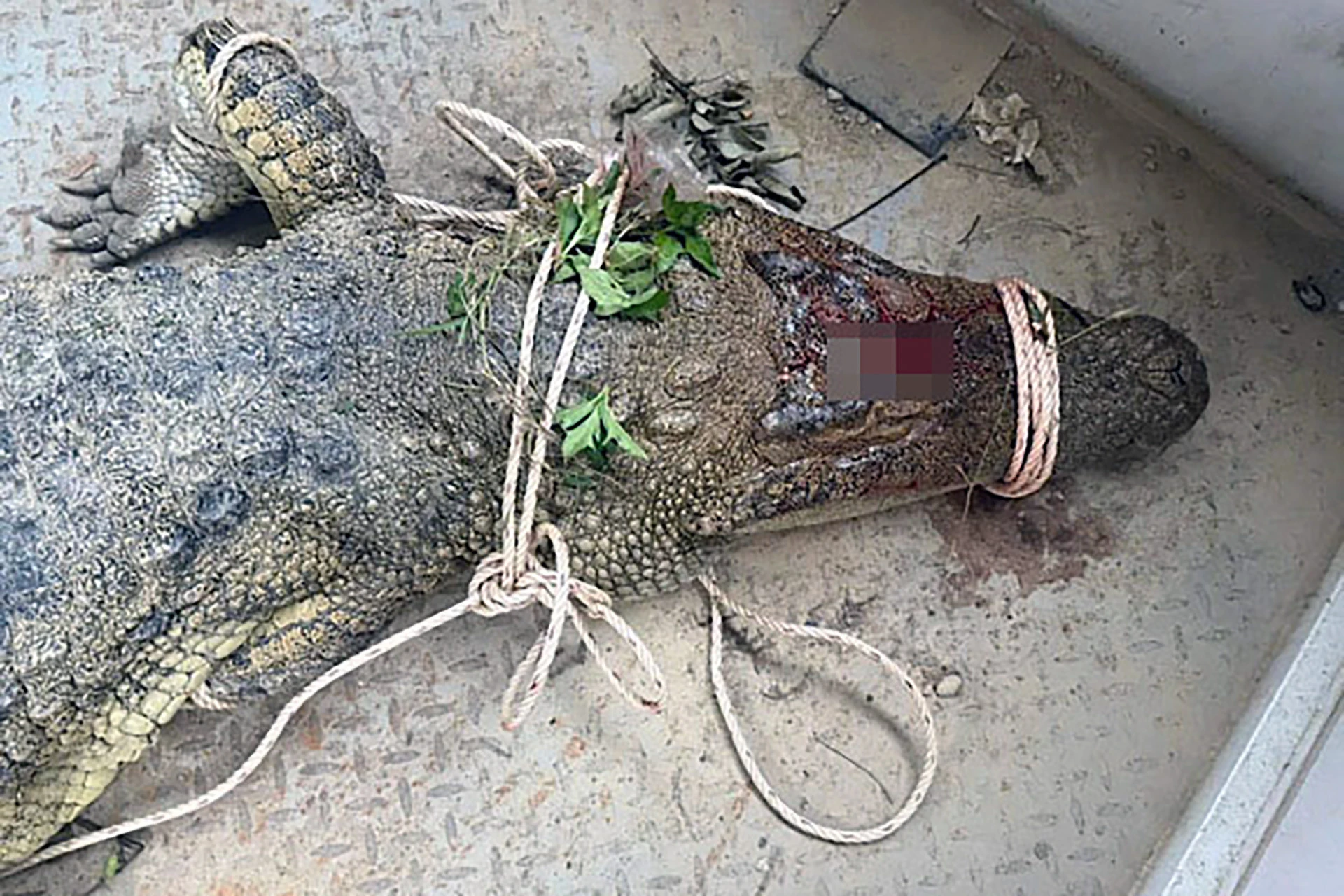 Sau nhiều ngày truy tìm, lực lượng chức năng đã bắt được con cá sấu dài khoảng 2,6m, nặng gần 80kg, từng tấn công một nam thanh niên đi câu cá tại tỉnh Khánh Hòa .