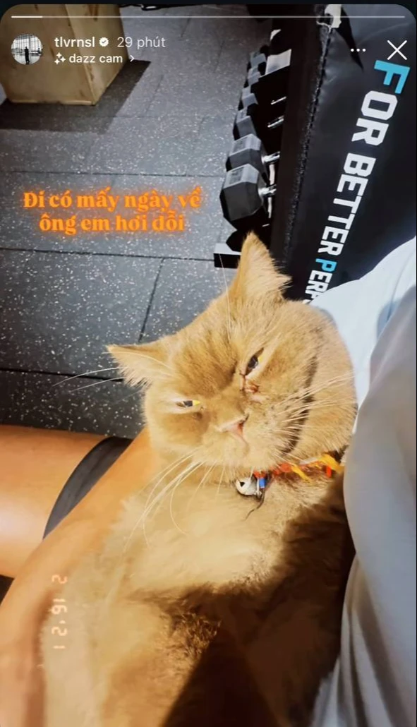 Mới đây, cộng đồng mạng xôn xao trước loạt động thái mới của cặp đôi Tóc Tiên - Touliver. Trên trang cá nhân, Touliver đăng tải story chụp cùng chú mèo quen thuộc sau thời gian đi du lịch. Cư dân mạng phát hiện ra đây là phòng tập nằm trong biệt thự của cặp đôi. "Đi có mấy ngày về ông em hơi dỗi", anh viết. Touliver giữ động thái quen thuộc không nhắc gì tới bà xã Tóc Tiên.