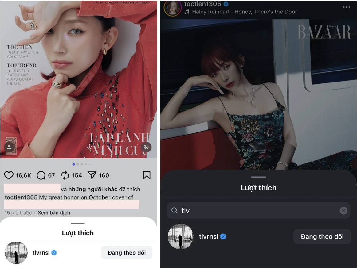 Touliver đều đặn thả like hình của Tóc Tiên giữa loạt tin đồn gây xôn xao