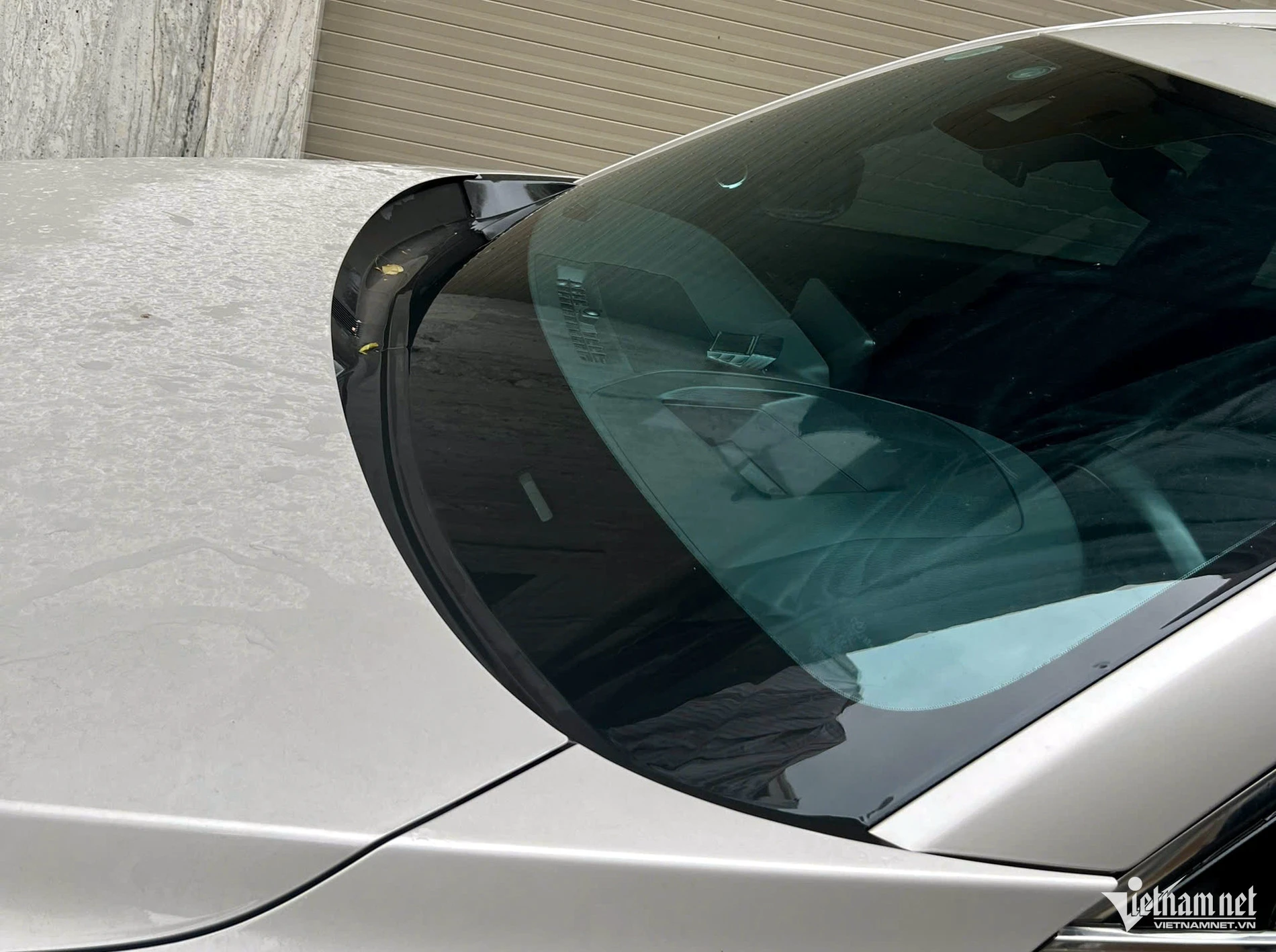 Xe ô tô màu trắng bị kẻ gian lấy cần gạt nước.