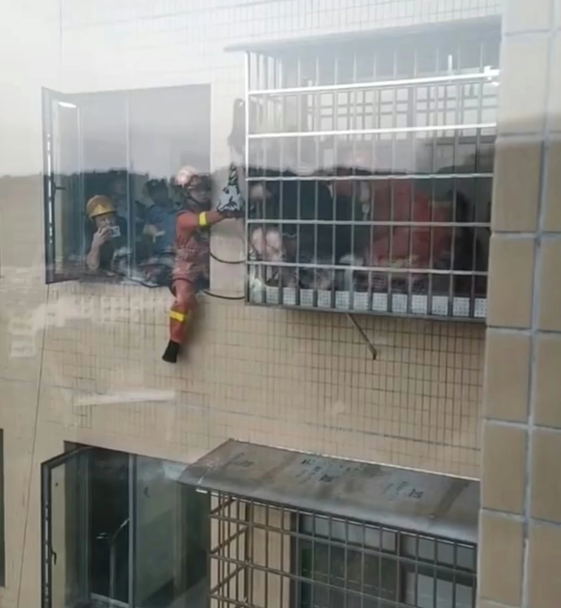 Lúc này, ông Tăng ở căn hộ kế bên nghe thấy lập tức chạy sang giúp chị Ngô giữ chặt bé gái, đồng thời gọi cho lực lượng cứu hộ.